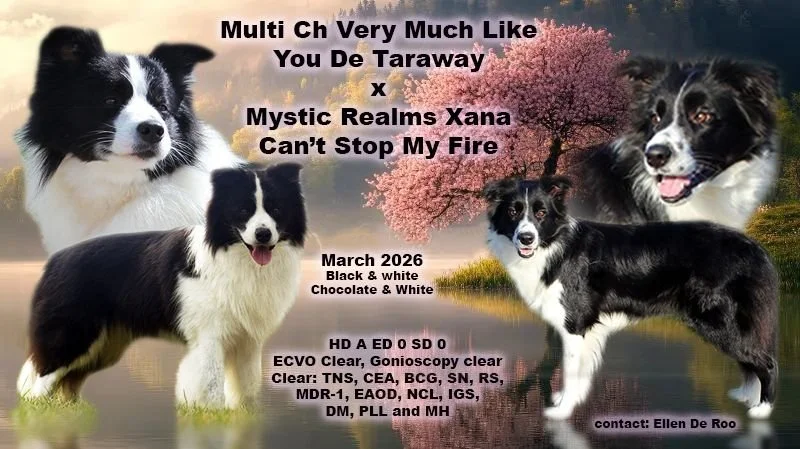 Nu de dracht is bevestigd, gaan we (verder) op zoek naar liefdevolle, enthousiaste baasjes voor onze pups. Als ze geboren zijn, kan je 24/24 meekijken via de camera. En na 3 weekjes kan je een eerste keer komen puppyknuffelen. Als ze 8 weken zijn, vermoedelijk tussen Hemelvaart en Pinksteren, mogen ze naar hun nieuwe huisje.